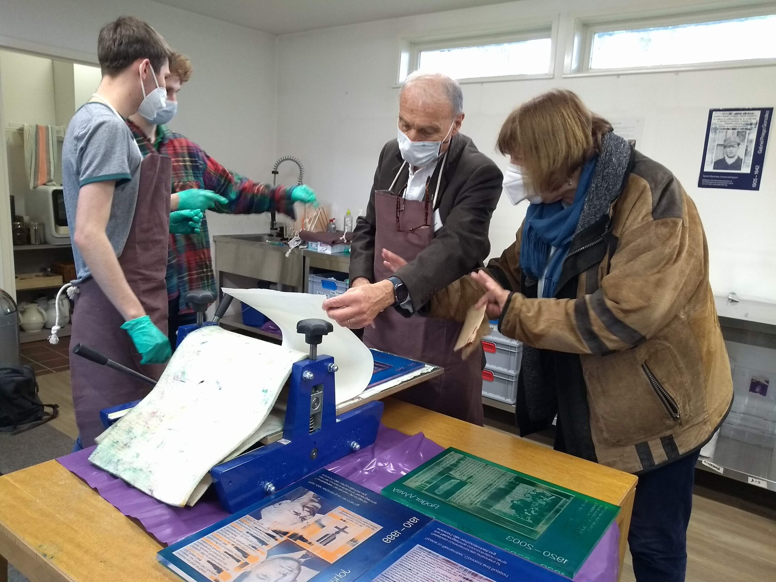 Der Ort der Verbundenheit besteht aus einer Druckwerkstatt, einem Regal für die Druckplatten und einer Plakatwand. Jedes Jahr im Mai werden im Rahmen der Gedenkfeiern zum Jahrestag der Befreiung des Konzentrationslagers neue Druckplatten und neue Plakate ergänzt. Einen Rückblick auf die Veranstaltung vom 2. Mai 2024 finden Sie hier sowie einen Beitrag im NDR-Fernsehen für die Sendung “DAS! – Rote Sofa”.